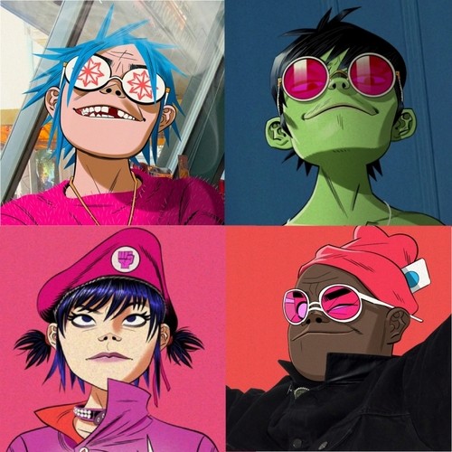i love 2D's mickey mouse hat, and his shirt which says "i am the lamb" because lambs are fucking awesome. and i know it's a cult thing to have a sacrificial lamb or whatever but it's so morute. so i can forgive his outfit not being pink, plus 2D's just my favourite. i think there's a decent amount of images of 2D wearing pink already, butβ¦.he could wear more of it. i adore murdoc's cult robes and the hats he has to go with them. i like the more detailed ones more, though. my favorite gorillaz artwork actually comes from phases 6 and 7 [not saying that to be funny, they actually are], because they're more detailed, and detailed art is exactly the kind that i like to make and look at. but i still totally get the appeal of the earlier phase art styles with their simplicity and grittiness. because i do love the clean look of the more recent artwork, but the edginess and grit of the older art is really cool as well. anyway, i also like the suits that murdoc wore for the cracker island listening party and the skinny ape immersive performance, because he wore pink underneath. as for noodle, i like her spiky black hair more than her new style, but in her new hair i think her baby fringe is cute. and there was also that one tiktok of her with pink hair which i really liked. 2D says in one of his podcasts that noodle designed their pink outfits which is really cool. i love pink so muchβ¦.. um anyway, as for russ, his pink hospital gown is pretty simple but pink so obviously i like it. but i also really like when he wears pink sunglasses, both the circle and star shaped ones. but in the art of him where he has pink pupils, that doesn't match up with the music video for cracker island where his new pupils are just kind of faded pink circles? i don't know how to describe it but i always thought, if i got to decide what the design for that would be, i would just make russel's eyes completely pink. but i don't know if the 3D model messed up how his eyes were supposed to look or what.